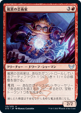 大あわての捜索 意外な授かり物はミゼット様ではより強力になる呪文で嵐窯の芸術家は魔技により宝物トークンが出るようになり大体1マナのキャントリップはフリースペル状態に