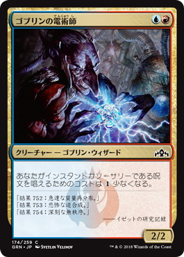 嵐の伝導者、ラル ゴブリンの電術師はイゼット団的にも入れたい あとストーリーで散々な扱いのイゼットの模範、メーレクも入れてあげて下さい 重いけど能力は強い…?