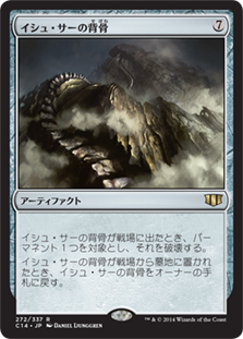 イシュ・サーの背骨はひどく重いカードですが貴重な無色での置物破壊カードで不安定なオベリスクはタップ起動で破壊が出来てマナファクトにも 残滅学入門は無のロッドを軽いマナ焼けて必須クラス