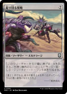忠誠の剝ぎ取りは押しが弱めなアズラスクにピッタリで統率者ダメージも狙えるかも 走り回る侵略はトークンを5体生み出せるため滅殺付与で大体相手は吹き飛びます