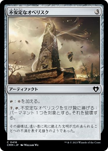 イシュ・サーの背骨は速攻性があり確実に破壊したい時に 7マナなのでズロドックとも相性良しで不安定なオベリスクはマナファクトと除去持ち 石の静寂では無理ですが