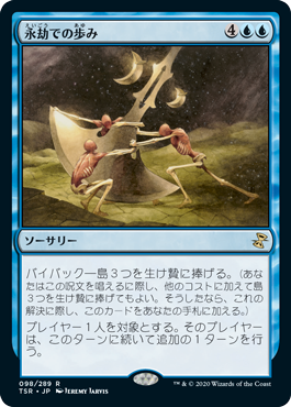 永劫での歩みは島3つ生け贄に捧げる事でバイバック発動でコンボ寄り 時間の伸長は追加ターン2を得ると派手ですがマナ総量の高さを生かした使い方が多め 時間への侵入は墓地デッキだと非常に扱いやすい追加ターン