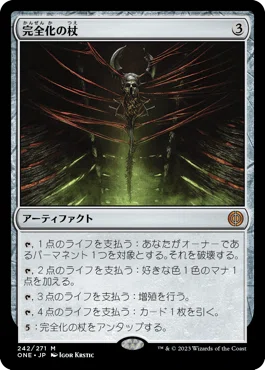 完全化の杖は威圧の杖のように使えるカードでありキナンとの相性は抜群 各自アーティファクトサーチを使えばいとも簡単にコンボ達成が出来てしまいます