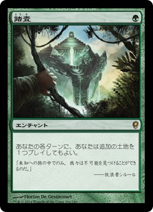 タトヨヴァと似たような効果をしておりコチラは1マナ重い代わりに追加土地セット権とある程度P/Tを持っており火力などで除去されにくい特徴を持ちます