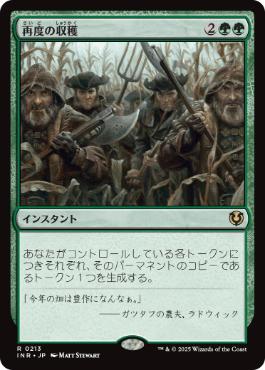 再度の収穫は1度だけですがインスタントでトークンを増やせるカードなので一気に勝負を決めたい時などにも