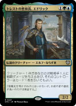 エドリックを見たら焼け という言葉がある程3マナと軽い割に圧倒的なドロー性能を持っているカードで小粒のブロックされないクリーチャーなどが並ぶととんでもない事に