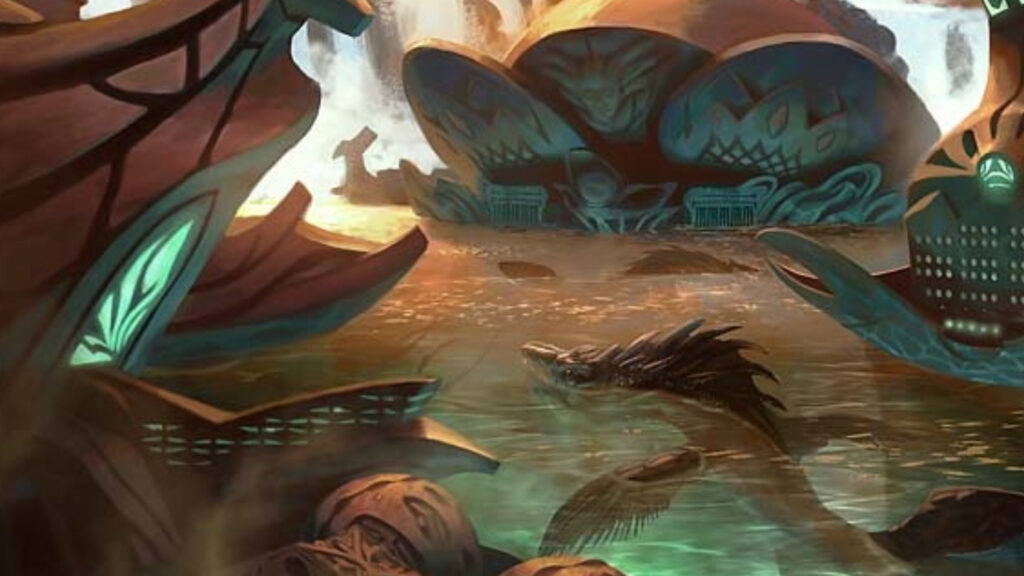 マーフォークデッキを作る際におすすめの統率者で緑青が入っており単色のマーフォークよりも対応力と土地加速の面で強力で能力も全体強化+土地回収なのが便利