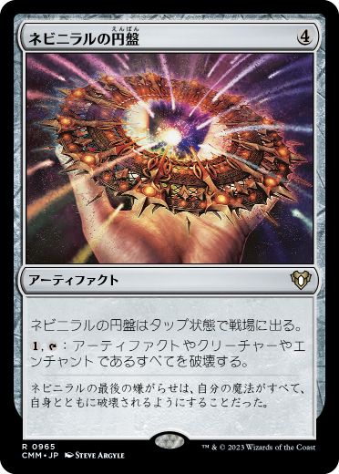 コントロールしているアーティファクトが全て火力に変わりかつアンタップが出来るカードなどと組み合わせれば火力をまき散らす事が可能で赤白っぽくない戦い方が出来ます