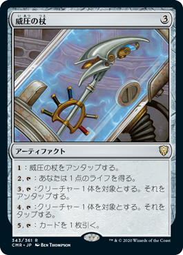 威圧の杖を使ってアンタップすれば何度も伝説のカードをサーチ出来てあとフレーバー的にも素晴らしいです 太陽の勇者、エルズペスなどのプレインズウォーカーも伝説なので勿論サーチ可