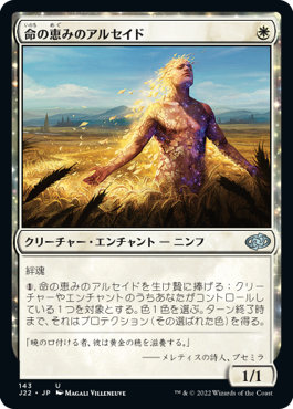 楽園の拡散は1マナでマナ加速出来る軽量エンチャントでエンチャントなら何でも反応するのでクリーチャー・エンチャントである命の恵みのアルセイドもドローの対象に