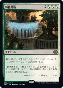 特権階級はエンチャントで全てのパーマネントに呪禁付与と除去の隙を一切与えずに着地出来るように やはり召喚:バハムートは踏み倒したいエンチャント筆頭でしょうか