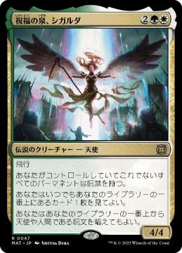 人間と天使の綺麗なコントラストが魅力の統率者でありシガルダ以外のすべてのパーマネントに呪禁とライブラリー上から人間と天使を呼びだす事が出来ます