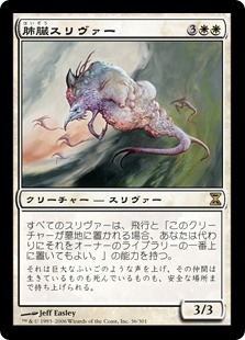 疫病スリヴァーはさらに謎であり自分のスリヴァーが自分に1点バーン飛ばすようになります なんで 肺臓スリヴァーも謎なライブラリー帰還能力持ち 羽軸スリヴァーはそこそこ