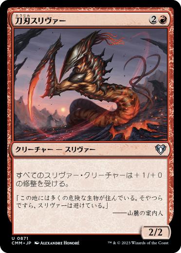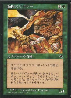 とにかく横並びと二段攻撃を持ったスリヴァーと組み合わせると40点のライフも一気に削れる位の火力が魅力であり同じスリヴァー統率者を持っててもまた別で欲しくなる筋肉力が素敵です