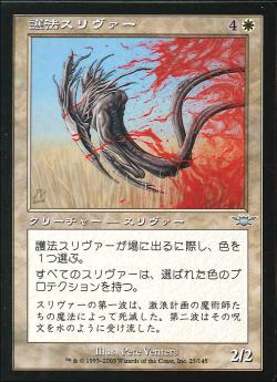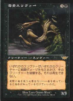 護法スリヴァーはプロテクション付与と赤の冒涜な行動などの火力除去対策に 毒素スリヴァーはバジリスク能力付与で使えそうで戦闘ダメージのみという制限さえ無ければ