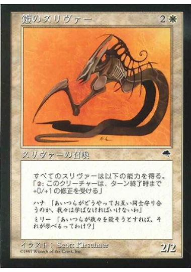 スリヴァー専用のチューターとスリヴァーのコントロール奪取を持った技巧派スリヴァーで1マナさえあればインスタントタイミングで何度も使える能力が特に強力