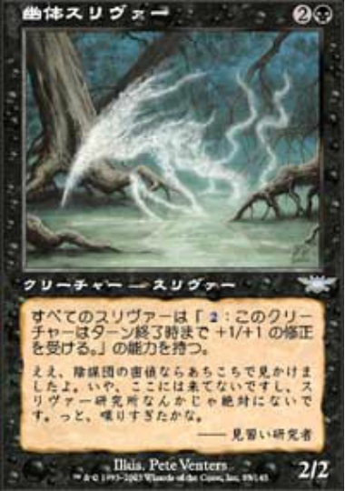 レギオンの中で1番便利なのが活性スリヴァーで瞬速の共有が特に便利で樹根スリヴァーは打ち消されなくなるという青嫌いには嬉しすぎるスリヴァー 幽体スリヴァーはイラストすっごいきれい