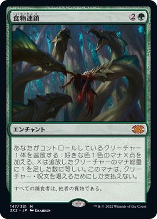 食物連鎖とのコンボは初祖スリヴァーを使う上で是非とも搭載したいカードでリトヤラの反射を置けば唱えた時にさらにコピーされて大惨事に