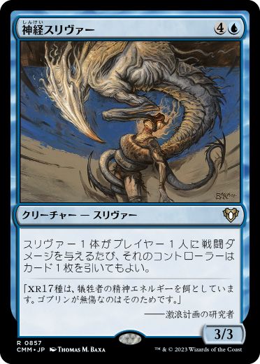 下のコントロール奪取能力も工夫をすると相手のクリーチャーも奪えるようになるためコチラも独特な遊び方が出来るスリヴァーの1枚です