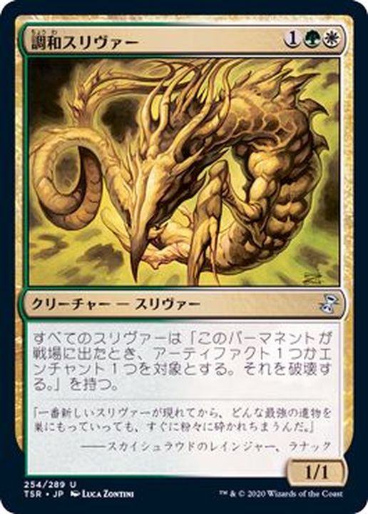 調和スリヴァーはオーラの破片内蔵の最強スリヴァーで風乗りスリヴァーは飛行付与で軽く推奨スリヴァーは被覆により単体除去が通らなくなるスリヴァー