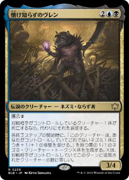 ヴレンがいれば普通に破壊による除去も追放による効果でネズミを出せるようになりますし特にこのネズミトークンはネズミ1体につき+1/+1の修正を受けるという恐ろしい文章がついてます